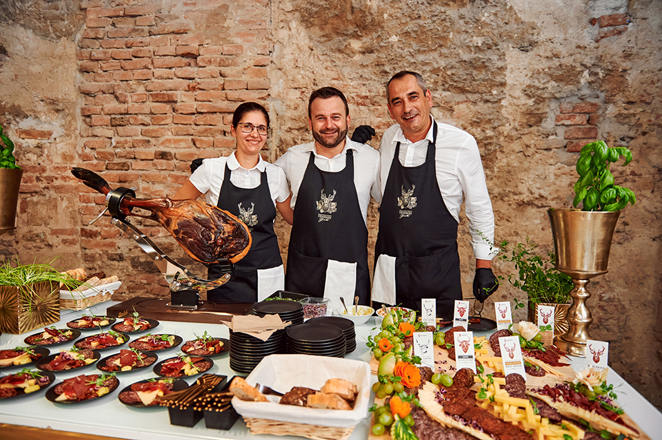 A prémium minőségű sonkákon, szalámikon és kolbászokon túl is csábító finomságokkal készülnek: zöldségek és gyümölcsök mellett francia sajtok és kovászolt kenyérszeletkék kerülnek a tálakra. A dekorációt virágdíszek egészítik ki, a standokhoz pedig molinó tartozik. Volt már több olyan rendezvényük, ahol a fentieket még csípős bivalykolbászból készült nyalóka is kiegészítette. A tányérok, evőeszközök a fenntarthatóság jegyében többnyire lebomló, préselt kókuszrostból készülnek, ami a szívünknek különösen kedves.
