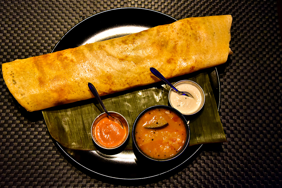 A dosa talán a legismertebb, az étel erjesztett rizsből és lencséből készülő lepény- vagy palacsintaszerű fogás. A rendkívül népszerű eledelt ráadásul változó formában készítik, van süvegre emlékeztető, négyszögletes és tekercs is. Minden variánshoz tálalnak szószt és kis tálkában sambart, ami zöldségekkel (karfiol, sárgarépa), fekete szezámmal készített félsűrű lencseleves.