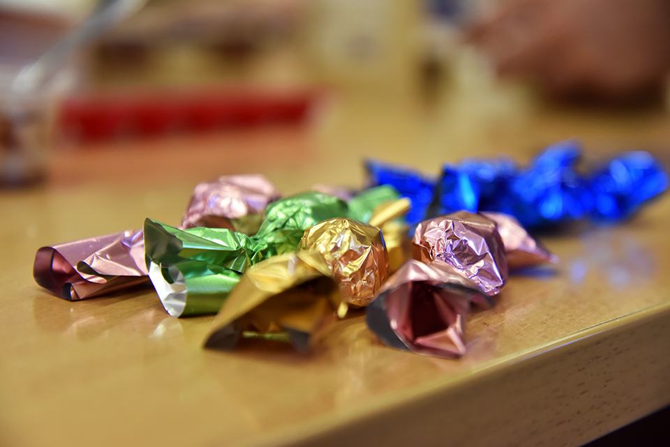 A foglalkozásokon az érdeklődők Huszár Zsuzsa dietetikus vezetésével önthettek szaloncukrot, aki cukormentes termékek fejlesztésével foglalkozik, azaz egy igazi szakavatott avatta be a Lélek Palotájába érkezetteket a cukorkák készítésének titkaiba. A szaloncukor készítéséhez – de írhatnánk akár bonbont is, hiszen a technológia azonos – lényegében egyetlen eszközre van szükségünk, egy szilikonból készült formára. A megolvasztott csokoládét ebbe a formába kell belecsurgatnunk úgy, hogy kitöltse a mélyedést és egy vékony réteget képezzen annak falán. Ha ezzel megvagyunk, hagyjuk megdermedni kissé, majd hozzá is foghatunk a töltéshez.